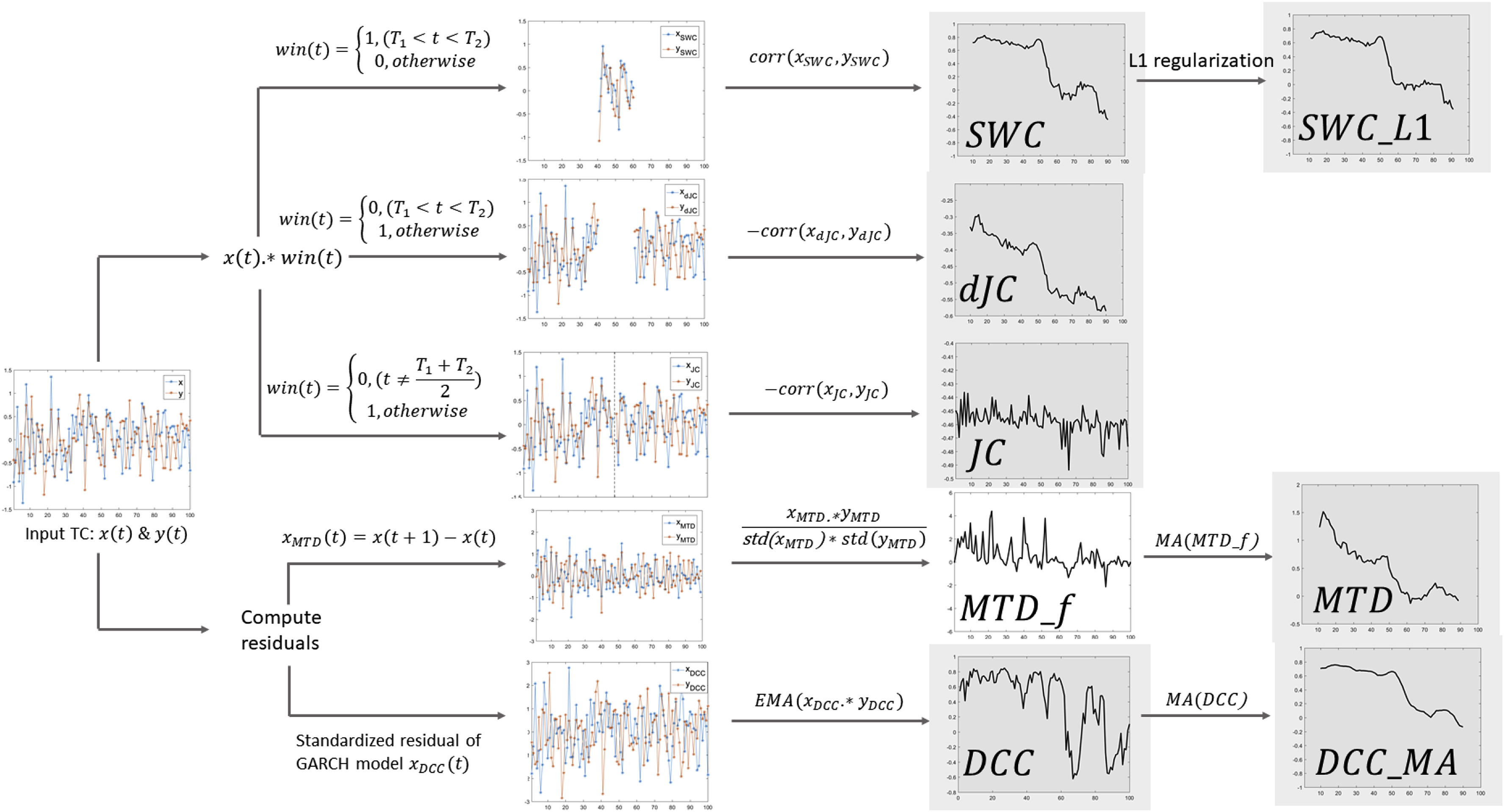 Alright, back to methods—since that’s the focus of this page. Let me highlight one purely methodological study I’ve conducted on time-varying FC. The first is a method comparison study led by my former mentee, Dr. Hua (Oliver) Xie, who was interested in identifying the most effective way to detect and characterize dynamic FC. This was no small task. Once the scientific community embraced the idea that time-varying FC might hold meaningful information, a proliferation of analytical methods emerged—ranging from various flavors of sliding-window correlation and dynamic conditional correlation (DCC) to multiplication of temporal derivatives and jackknife correlation, among others.